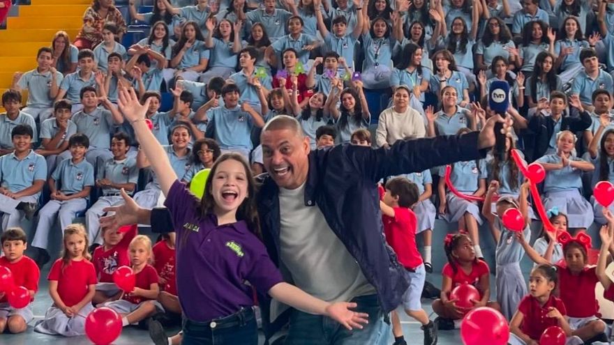 Miguelito Oyola fue el encargado de animar la mañana llena de juegos y alegría en el Colegio Episcopal de Panamá.