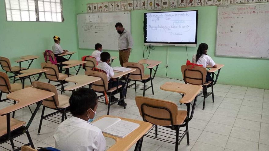 Las clases se dan tres veces a la semana martes, miércoles y jueves. Vienen en un horario de bloque. Como es una escuela multigrado somos dos maestros y uno de preescolar. Hay un maestro que atiende primero, segundo y tercero, mientras yo me encargo de cuarto, quinto y sexto”, indicó González.