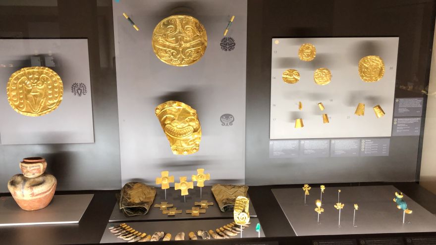 Con una museografía renovada las piezas de oro se exhiben combinadas con artefactos de cerámica y otros materiales encontrados en los enterramientos. Se trata de una manera de hacernos entender, cómo estos señores se preparaban para ir al más allá adornados para demostrar su poderío y acompañados de sus seres queridos y sirvientes para hacer más agradable su paso al inframundo.