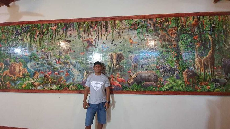 Sayas se aventuró con uno llamado “Vida” de 3,000 piezas, luego con “La Última Cena” de 13,200 piezas y el más grande denominado “Vida Salvaje” de 33,600 piezas, que lo terminó el año pasado y le tomó dos años.