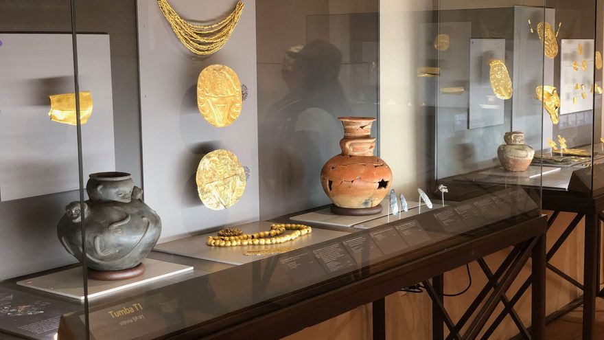 Lo que vemos en esta exhibición es una serie de magníficos artefactos, muchos de ellos de oro, encontrados por los arqueólogos Julia y Carlos Mayo en el 2011 en varias tumbas de la milenaria necrópolis de El Caño.