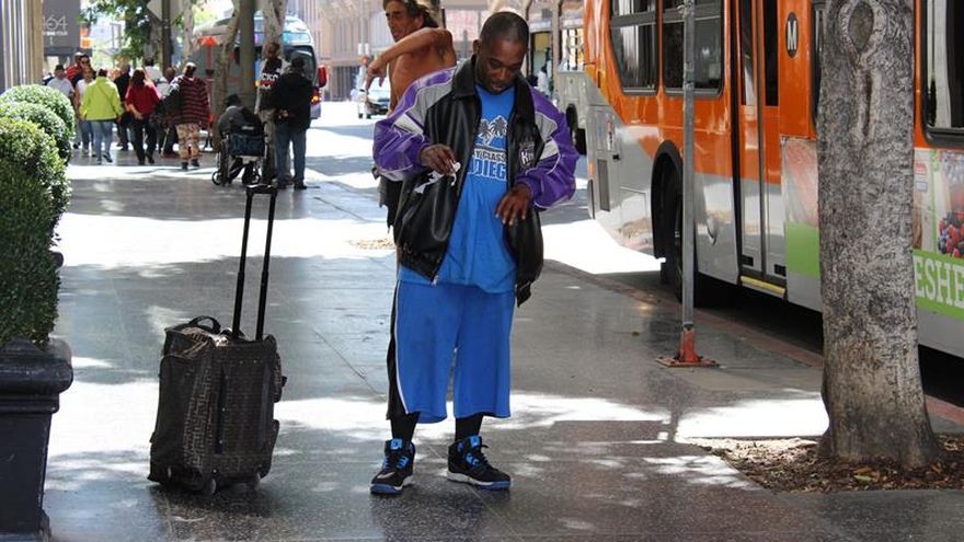 En Los Ángeles, considerada la capital de los indigentes de la costa oeste, miles de desamparados malviven arraigados en el corazón financiero y, en particular en Skid Row, una de las zonas con la mayor densidad poblacional de personas sin hogar del país.
