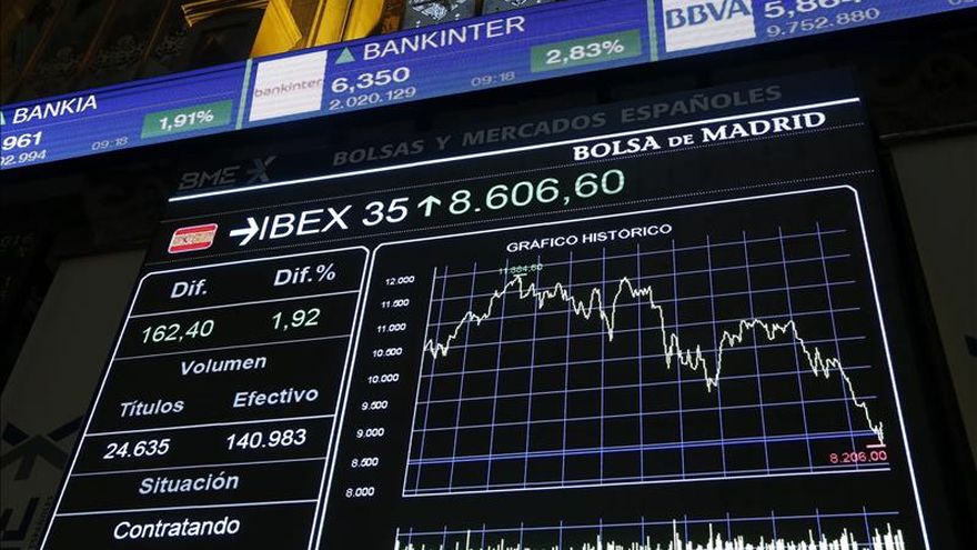 Con la prima de riesgo en 128 puntos básicos (121 ayer), el principal indicador del mercado, el IBEX 35, quedó en 8.528,7 puntos.