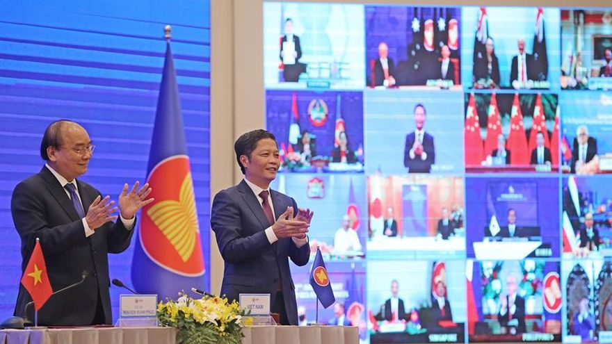 Debido a la pandemia, los mandatarios firmaron la RCEP y siguieron a sus homólogos vía teleconferencia.