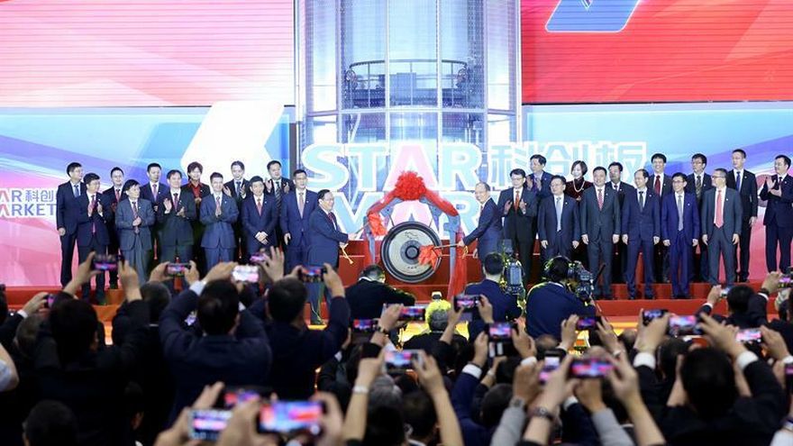 China/Las empresas que cotizan en el "Star Market", el nuevo índice chino que busca rivalizar con el Nasdaq neoyorquino, registraron alzas espectaculares en el primer día de transacciones en esta nueva plataforma de la Bolsa de Shanghái dedicada a los títulos del sector tecnológico.