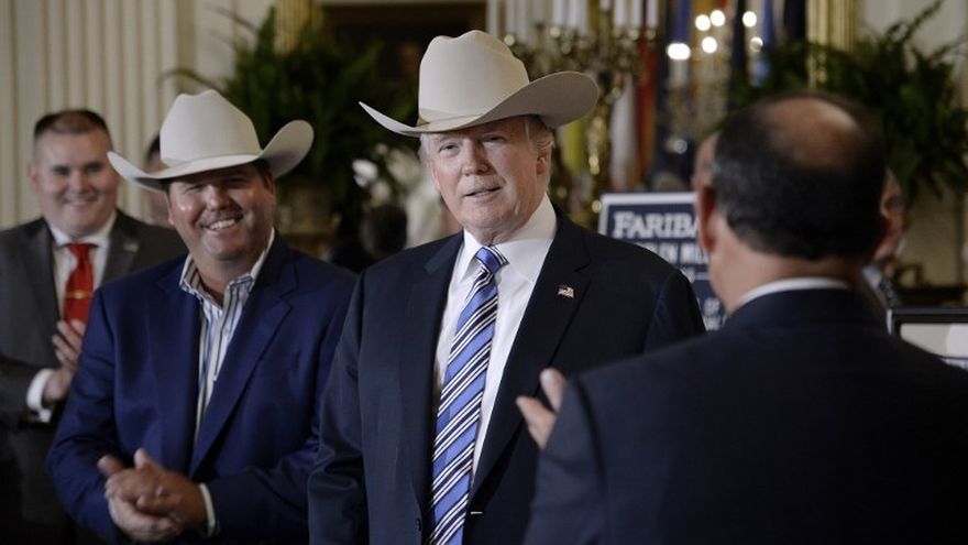 Antes de su breve discurso, Trump se probó un sombrero de vaquero Stetson y recorrió varios de los salones de la Casa Blanca convertidos este lunes en una exhibición de productos de los 50 estados de EEUU, desde palos de golf fabricados en Arizona a bisagras de puerta de Misuri y cerveza de Rhode Island.