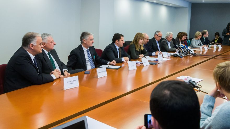 La rueda de prensa contó también con la presencia del vicepresidente de EC, Carlos Ribadulla, y representantes en el Parlamento Europeo de PP, PSOE, Ciudadanos y UPyD.