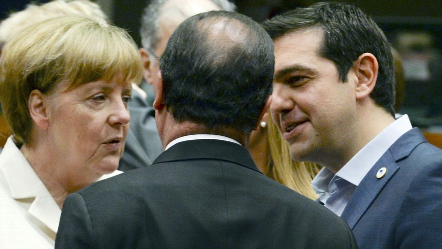 Las conversaciones avanzaron en una reunión entre Tsipras; la canciller alemana, Angela Merkel; el presidente francés, François Hollande, y el presidente del Consejo Europeo, Donald Tusk. La amenaza de expulsión de la zona euro puso una enorme presión sobre Tsipras para que aceptara impopulares medidas de austeridad, porque la gran mayoría de su población quiere permanecer en la eurozona.