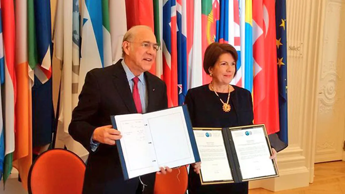 La firma estuvo a cargo de la embajadora de Panamá en Francia, Pilar Arosemena de Alemán, y el secretario general de la Organización para la Cooperación y el Desarrollo Económico (OCDE), Ángel Gurría, en la sede de esta entidad en París.
