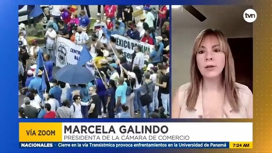 Marcela Galindo, presidenta de la Cámara de Comercio, Industrias y Agricultura de Panamá, manifestó la preocupación del gremio ante los constantes cierres de calles, la declaración de una huelga indefinida y el nuevo cierre de las escuelas que afecta a los estudiantes.