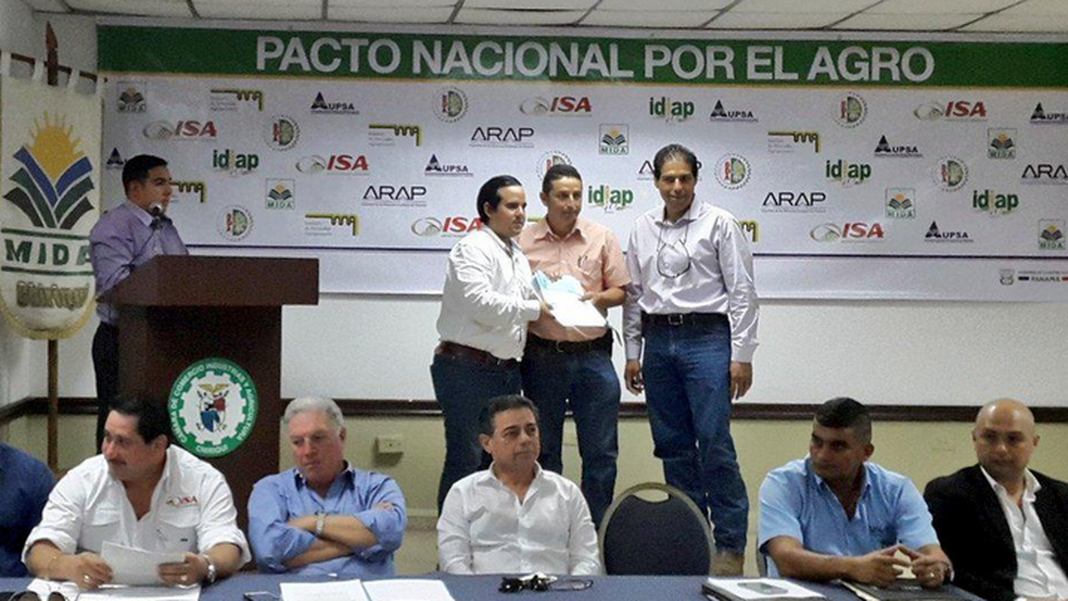 En el acto los cebolleros recibieron cheques como parte del Pacto por el Agro. / Cortesía/IMA