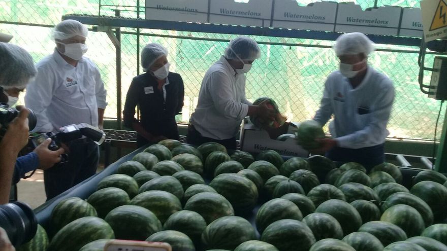 Realizan el etiquetado y envío del primer contenedor con 1,200 cajas de sandía bajo el sello Panamá Exporta y cuyo destino final es el mercado holandés.