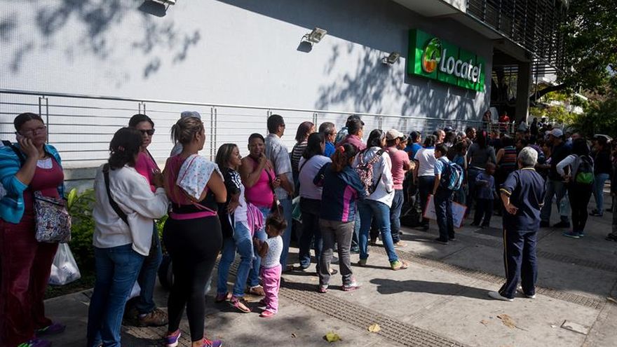 "Cobran 50 bolívares (0,25 dólares a la tasa oficial de cambio más alta) por bolsa", relata María, quien lamenta haber pagado hasta 400 bolívares (o 2 dólares) para que le cuiden la mercancía mientras hacía fila en vano: "cuando llegué (a la caja) se había acabado todo".
