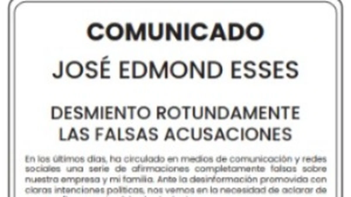 Comunicado José Edmond Esses: Desmiento rotundamente las falsas acusaciones