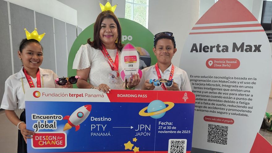 Tras un riguroso proceso de evaluación, el proyecto ganador de la edición 2024 de Diseña el Cambio es Alerta Max del Centro Educativo Bilingüe Nicolle Garay ubicado en la ciudad de Panamá (zona norte), que propone una innovadora solución tecnológica para prevenir accidentes causados por fatiga o falta de sueño. A través de lentes inteligentes con una tarjeta Micro:bit programada en MakeCode, el sistema detecta signos de somnolencia, emitiendo una alarma y un aviso de voz para alertar al usuario, promoviendo así entornos más seguros. Este proyecto representará a Panamá en el Encuentro Global de Diseña el Cambio “Be The Change” que se llevará a cabo en Japón, entre el 27 y 30 de noviembre de 2025.