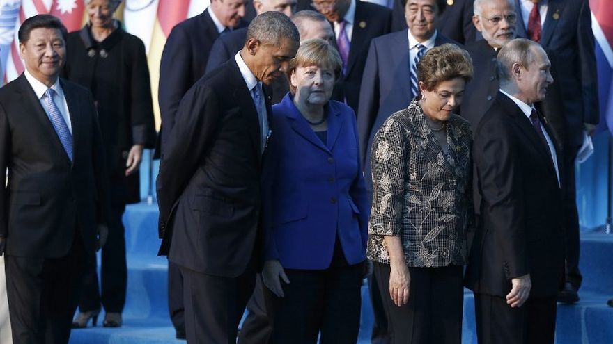La presidenta de Brasil, Dilma Rousseff; el de China, Xi Jinping; Rusia, Vladimir Putin; el de Sudáfrica, Jacob Zuma, y el primer ministro de la India, Narendra Modi, mantuvieron hoy un encuentro previo antes del inicio del G20 para coordinar sus posiciones.