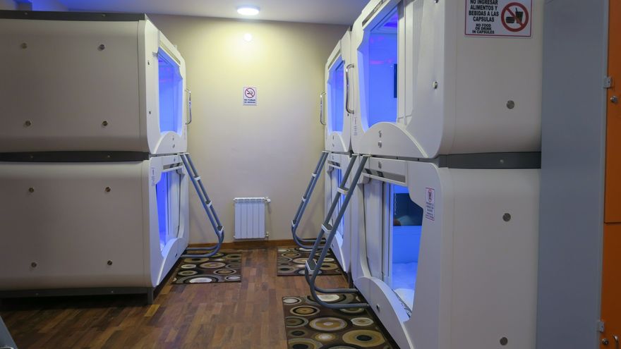 Este peculiar hotel está ubicado en el céntrico Prado de La Paz y cuenta con 44 camas cápsula de uso individual distribuidas en ocho habitaciones.