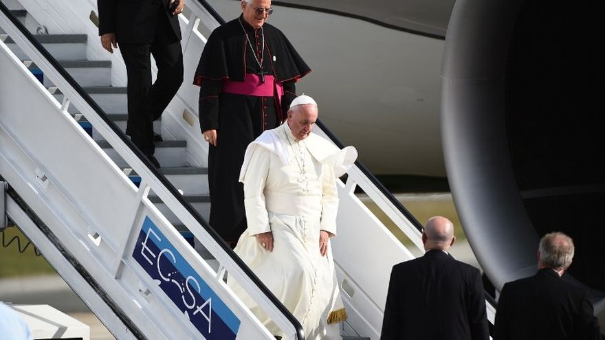 El papa Francisco aterrizó hoy en la ciudad de Santiago, la tercera y última etapa de su visita a Cuba, donde visitará el Santuario de la Virgen de la Caridad del Cobre, patrona del país y mantendrá un encuentro con familias, entre otros actos, antes de partir mañana martes rumbo a Estados Unidos.