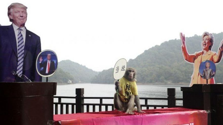 En el caso de estas elecciones por la Casa Blanca, reñidas como pocas, el pez indio Chanakya II y el mono chino Geda han escogido a Donald Trump, el primero comiendo de un recipiente en el cual se mostraba su imagen y el segundo lanzándose entusiasta a besar una figura que representaba al candidato republicano.