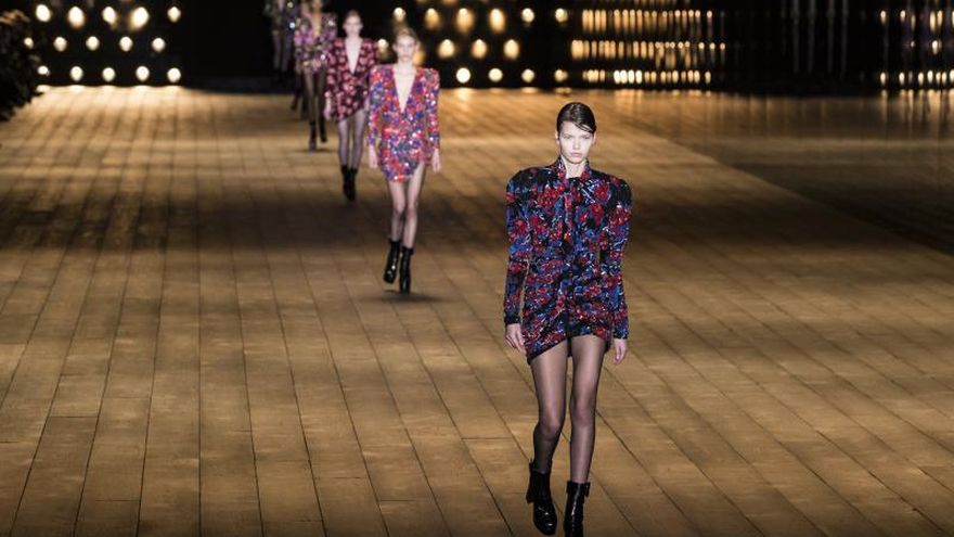 El diseñador vistió a las mujeres con esmóquines, transparencias, pantalones de talle alto o su mítica chaqueta "sahariana", retomada de la vestimenta colonial de los militares británicos a principios del siglo XX.