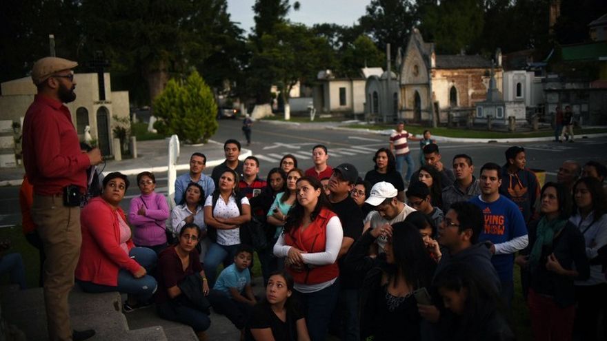 Cientos de guatemaltecos y extranjeros abarrotaron este domingo el Cementerio General de la Ciudad, en la capital de Guatemala para participar de un "necrotour" y conocer los mausoleos de personajes que perdieron la vida trágicamente, observó un fotógrafo de la AFP.