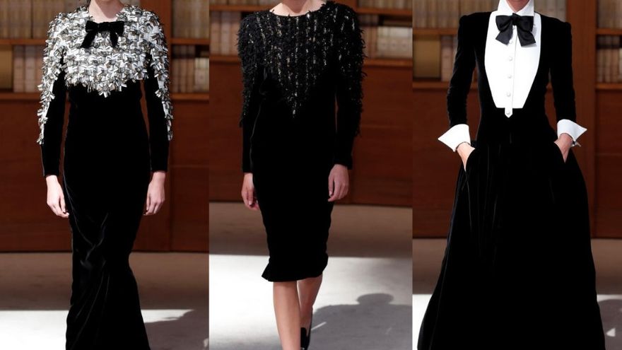 Eso sí, Lagerfeld estaba allí. Como en el pasado desfile de mayo, cuando Viard mostró la colección crucero primavera-verano 2019, un estilismo pareció dar nuevamente forma al fantasma del diseñador, en esta ocasión vistiendo vestido de terciopelo negro con camisa y alto cuello blanco, cerrado por un lazo negro. Esta podría ser la particular manera de recordar al maestro que le dio su confianza durante tantos años.