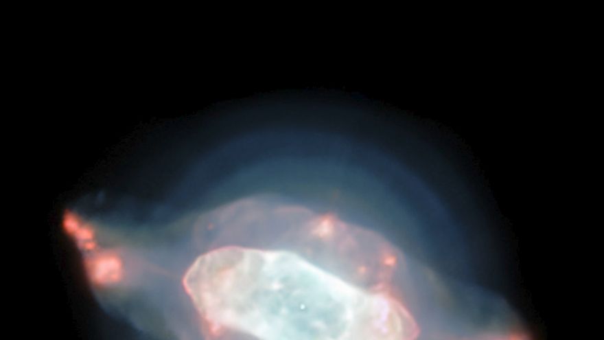 La imagen revela también diversas estructuras en la nebulosa, como una burbuja elíptica interior, una burbuja o capa exterior, un halo y una zona en forma de onda en el polvo.