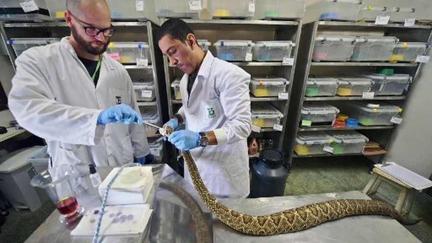 Junto a sus colegas del Instituto Butantan en Sao Paulo, De Souza almacena el veneno de cientos de serpientes en cautiverio para producir suero antiofídico, el antídoto que luego es distribuido por las autoridades sanitarias en diferentes hospitales del país.