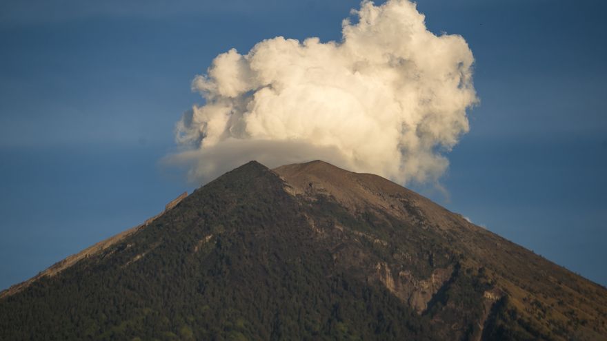 El volcán Monte Agung arroja cenizas el pasado mes de julio, visto desde la aldea de Amed, en Karangasem, Bali (Indonesia) / EFE