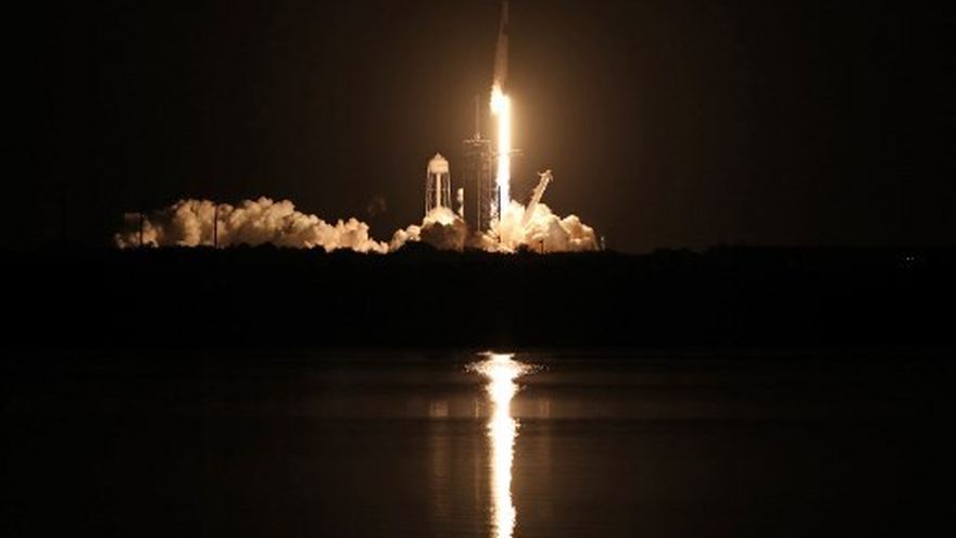 El cohete Falcon 9 de SpaceX despegó sin fallas y a la hora prevista desde del Centro Espacial Kennedy, en Florida (sureste), iluminando el paisaje nocturno de la costa.