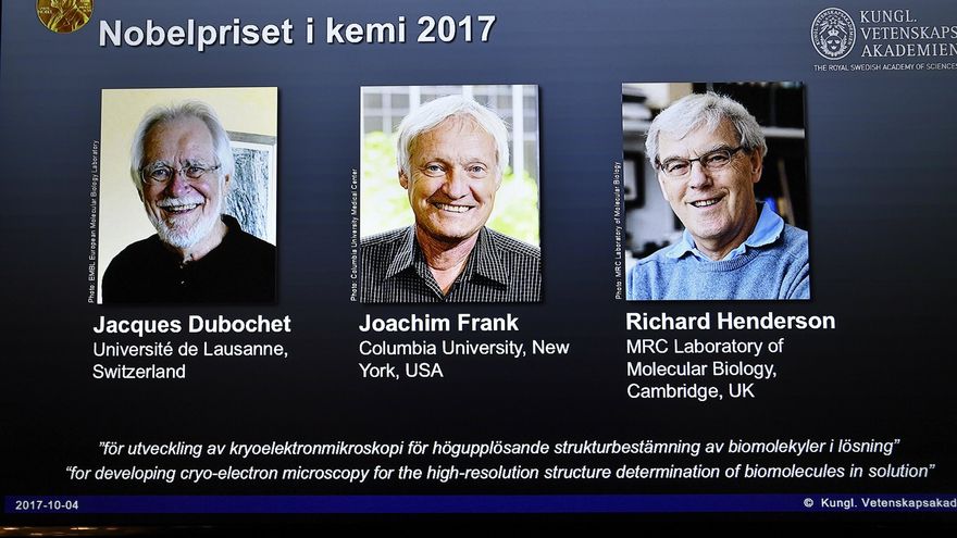 El suizo Jacques Dubochet, el germano-estadounidense Joachim Frank y el británico Richard Henderson fueron galardonados hoy con el Premio Nobel de Química por desarrollar la "criomicroscopía electrónica para la determinación estructural en alta resolución de biomoléculas en una solución", anunció hoy la Real Academia Sueca de las Ciencias.