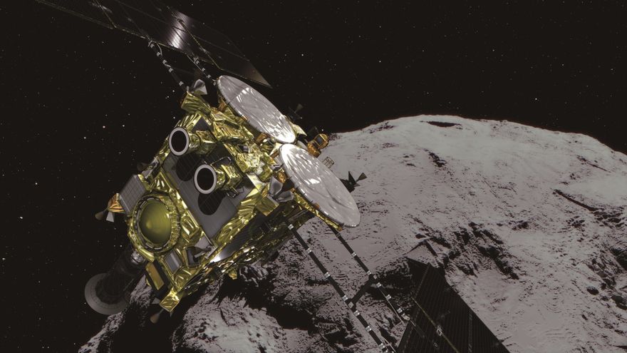 El aterrizaje del Hayabusa2 llega tras recorrer 3.200 millones de kilómetros alrededor del Sol en una órbita elíptica durante más de tres años, y después de alcanzar el asteroide el pasado junio y de permanecer suspendido desde entonces a unos 20 kilómetros de su superficie.