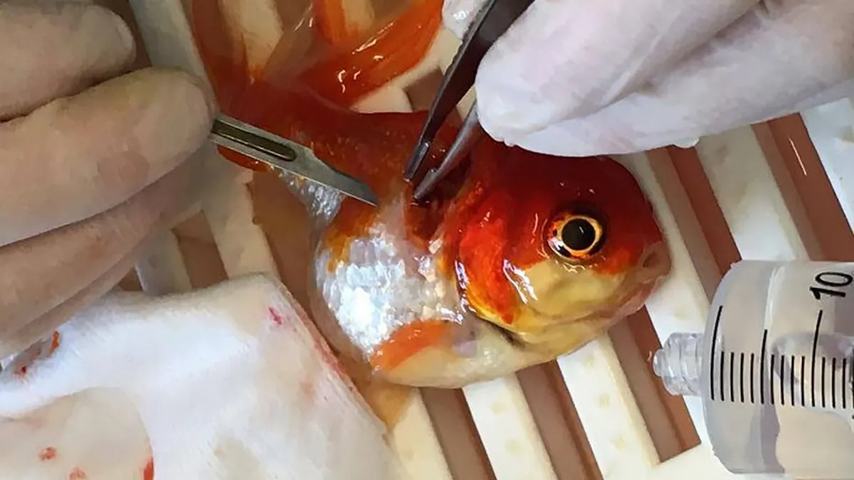 Imágenes compartidas por el centro veterinario que realizó operación de tumor cerebral a pez doméstico en Reino Unido / Foto/AFP