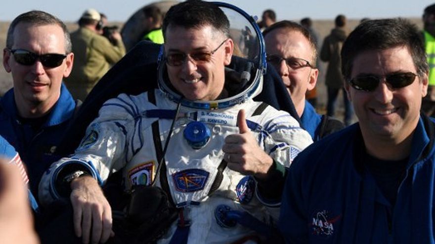Shane Kimbrough, Andrei Borisenko y Serguei Ryzhikov aterrizaron con éxito en la estepa kazaja a las 11H21 GMT (17H21 locales) a bordo de la cápsula Soyuz MS-02, según imágenes brindadas por la agencia espacial rusa Roskosmos.