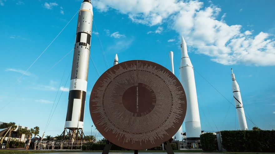 Su regalo de cumpleaños se lo entregó su amigo Stephen Attenborough, jefe comercial de Virgin Galactic: una escultura de metal titulada "En los hombros de gigantes", en la que aparecen inscritos todos los hitos de la carrera aérea y espacial.