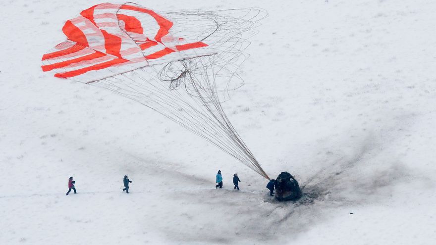 La Soyuz tocó tierra a 05.02 GMT a unos 140 kilómetros al sureste de la ciudad kazaja de Zhezkazgán, tal y como estaba programado.