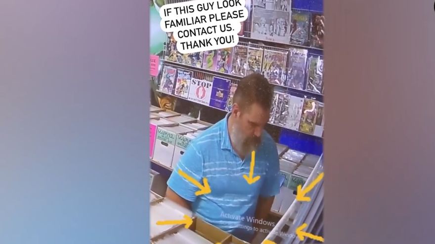 Las imágenes que ya fueron difundidas en redes sociales, muestran al actor metiéndose debajo de la camisa unas revistas, que luego fueron identificadas como comics valorados en unos 600 dólares cada uno.