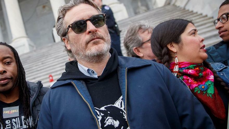En esta manifestación frente al Capitolio, el recientemente galardonado con un Globo de Oro por su papel en "Joker" invitó a los presentes a dejar de comer carne como parte de su lucha contra esta crisis: "Os insto a uniros a mi, a ti también, Jane", dijo el actor.