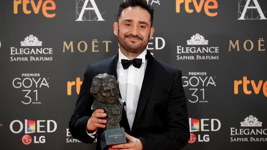 En la imagen un registro del cineasta español Juan Antonio Bayona, al posar con el premio Goya a la "Mejor Dirección", por su película "Un monstruo viene a verme", en Madrid. / EFE