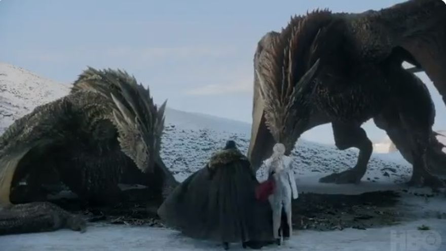 En las imágenes aparecen Snow y Targaryen montando a caballo y dirigiendo a sus tropas. Instantes después, dos enormes dragones sobrevuelan el castillo donde se encuentra Sansa Stark (Sophie Turner).