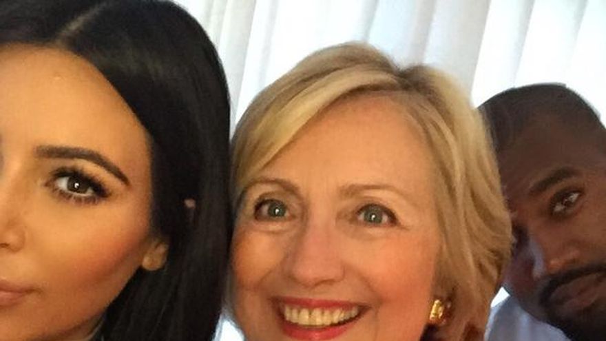 En la selfie -la marca de fábrica de la estrella de la telerrealidad- aparece la mitad de su rostro en primer plano junto a una sonriente Hillary Clinton y Kanye West, "Mr. Kardashian", en segundo plano.