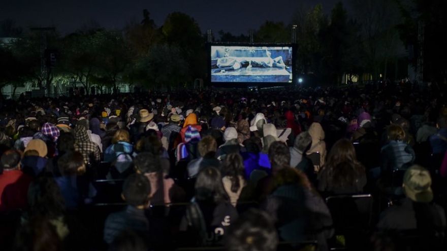 Miles de personas esperaron durante horas la proyección en un jardín cubierto con tapetes, donde los espectadores disfrutaron de "Roma" mientras comían maíz inflado y se quitaban el frío con humeante ponche frutal mexicano.
