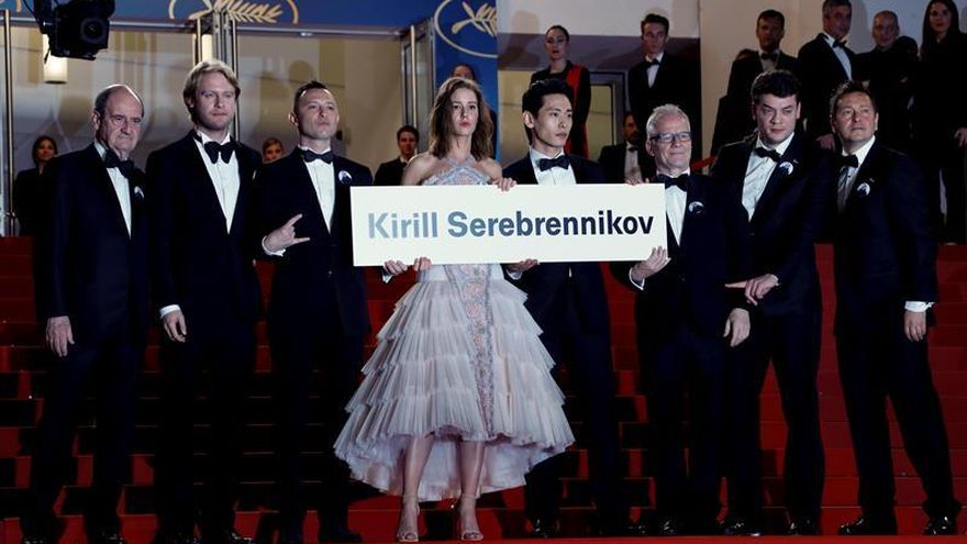 La alfombra roja de Cannes se convirtió este miércoles en escenario de protesta por la ausencia del cineasta ruso Kirill Serebrennikov, bajo arresto domiciliario y cuyo filme "Leto" compite por la Palma de Oro.