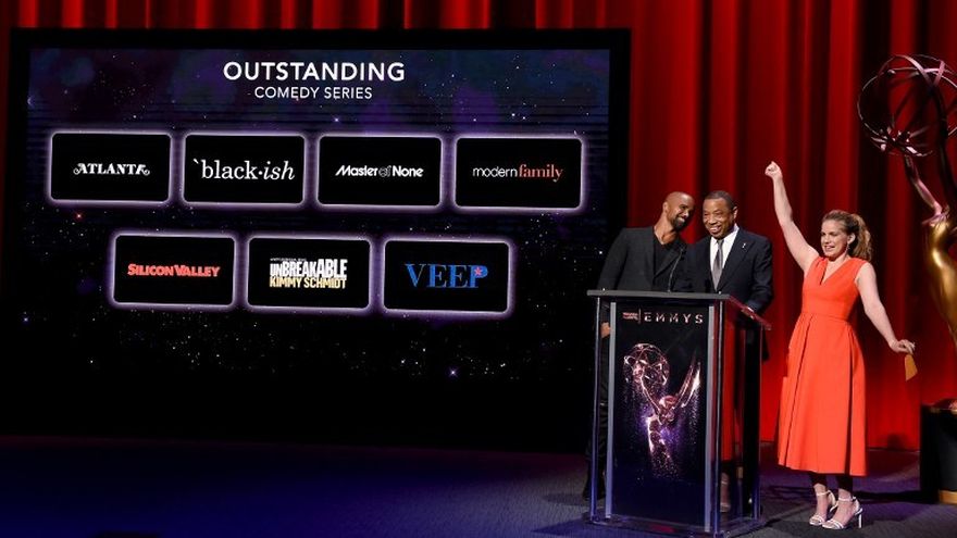 "Atlanta", "black-ish", "Master of None", "Modern Family", "Silicon Valley", "Unbreakable Kimmy Schmidt" y "Veep" compiten por su parte por la estatuilla a mejor comedia.