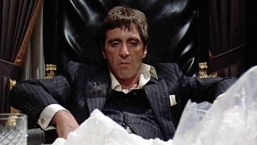 En la versión de 1983, de Brian de Palma, la historia se trasladó a Miami con Al Pacino en el papel estelar de Tony Montana, un refugiado cubano sin piedad que construye un imperio criminal basado en la cocaína.