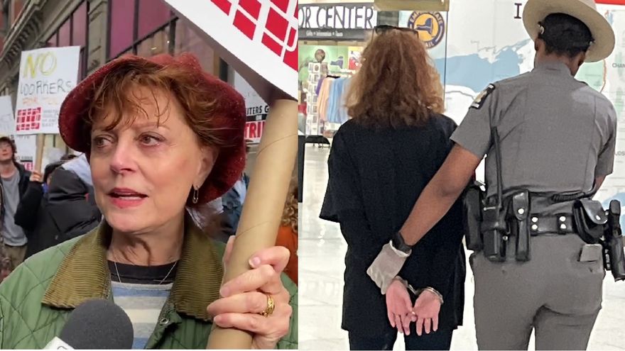 La actriz Susan Sarandon fue arrestada en el Capitolio del estado de Nueva York en Albany tras participar de una protesta en apoyo al aumento del salario mínimo para los trabajadores de restaurantes.