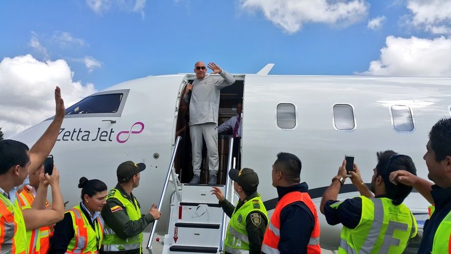 Vin Diesel, quien consideró algo "increíble" estar en Colombia, llegó en un avión privado al aeropuerto José María Córdova, situado en Rionegro, municipio cercano a Medellín, para asistir al matrimonio del cantante con la colombiana Angélica Cruz, según medios locales.