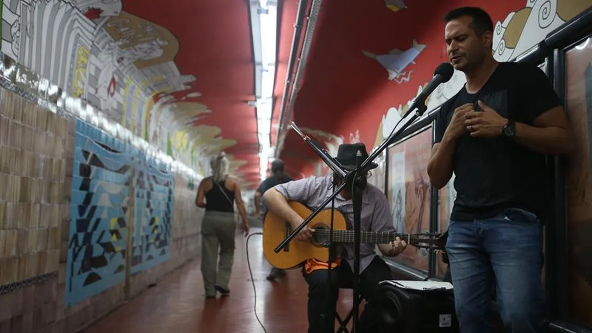 Entre el trajín de gente que circula apresurada por la estación de Pueyrredón del metro de Buenos Aires, resuena la voz de Yamil Ponce, un cirujano cardiovascular argentino que en su escaso tiempo libre cambia el bisturí por el micrófono y se convierte en cantante de tango callejero.