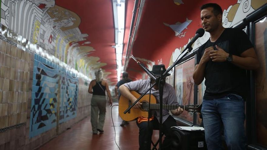 Entre el trajín de gente que circula apresurada por la estación de Pueyrredón del metro de Buenos Aires, resuena la voz de Yamil Ponce, un cirujano cardiovascular argentino que en su escaso tiempo libre cambia el bisturí por el micrófono y se convierte en cantante de tango callejero.