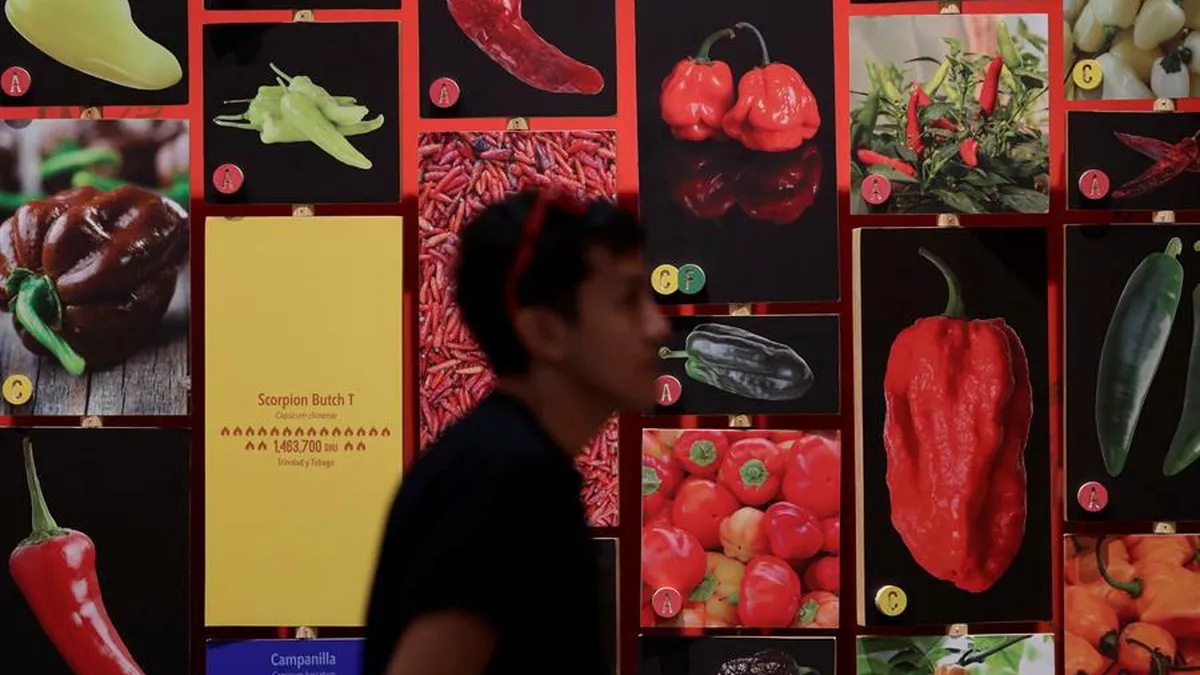 En la exposición se muestra desde el pimentón, originario de Hungría, hasta el Carolina Reaper un ají picante con 2.220.000 SHU y que es un híbrido entre Habanero y un Naga Bhut Jolokia.